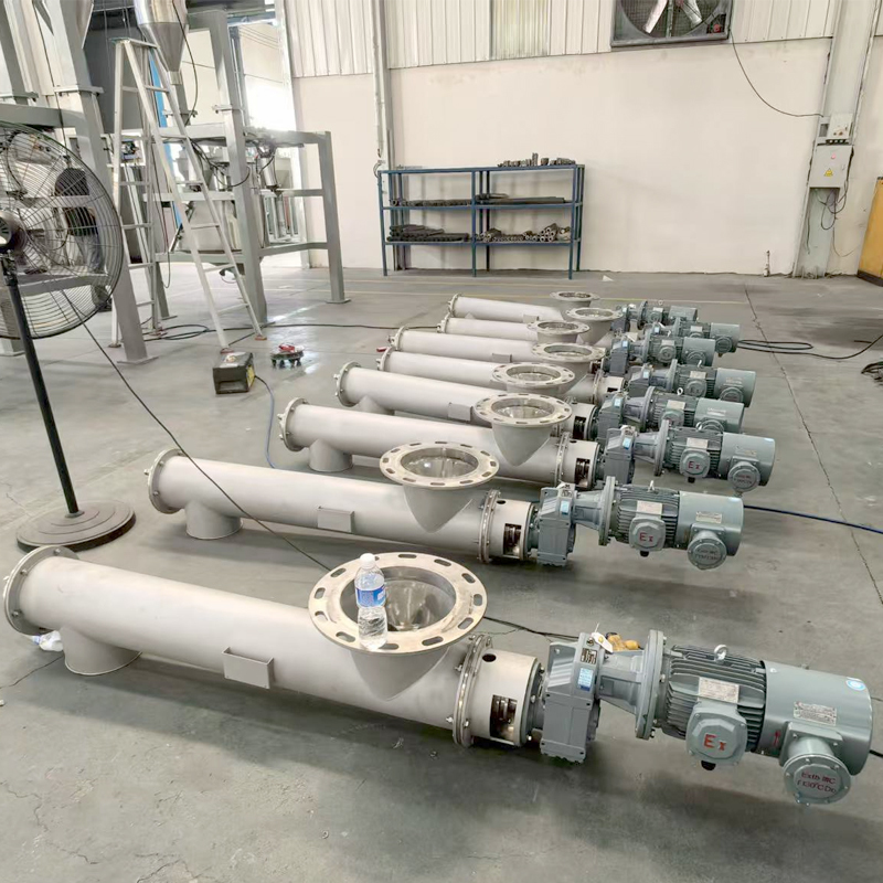 1.Свитовой конвейер транспортирует смешанный материал от ленточного смесителя к горизонтальному винтовому конвейеру