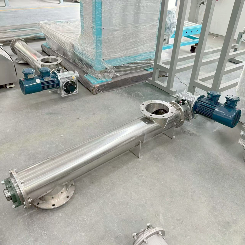 1.Свитовой конвейер транспортирует смешанный материал от ленточного смесителя к горизонтальному винтовому конвейеру