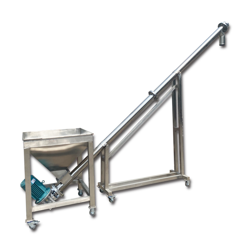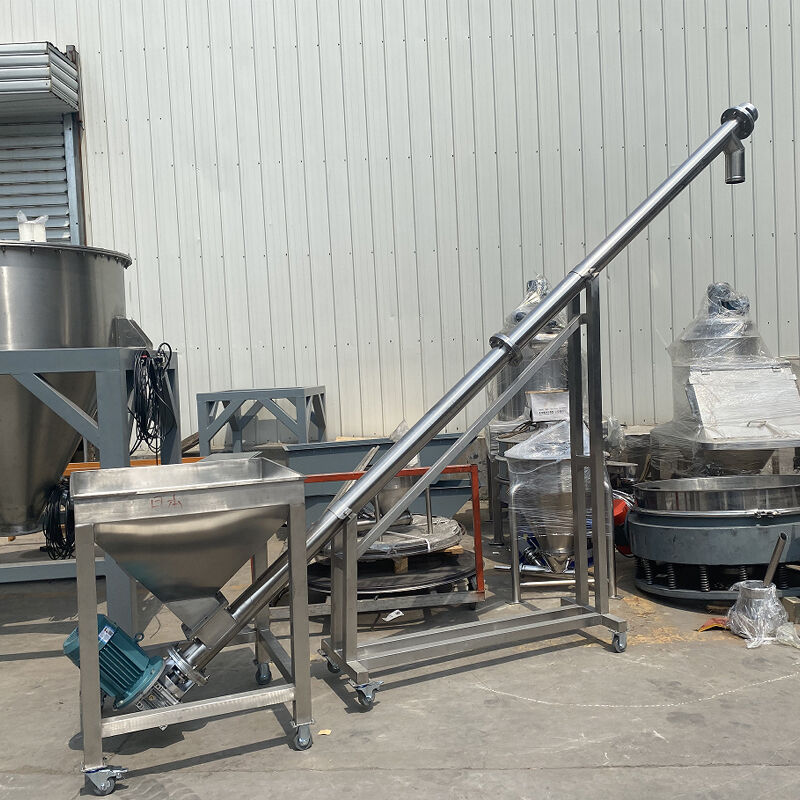 1. Шнековый конвейер транспортирует смешанный материал из ленточного смесителя в горизонтальный шнековый конвейер