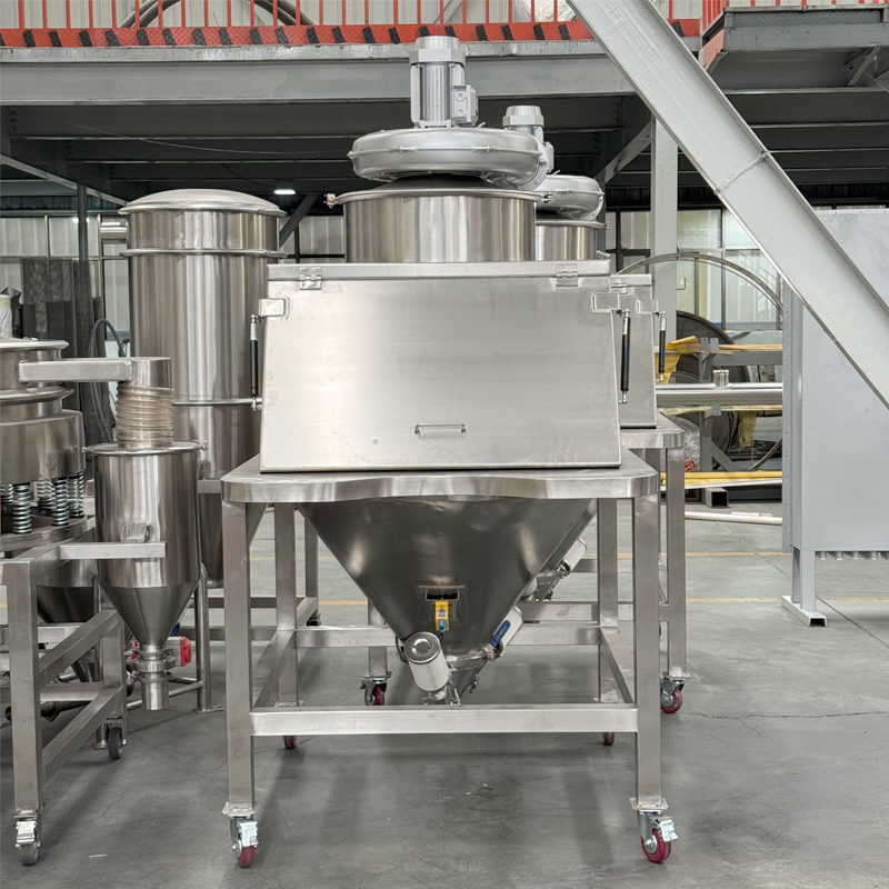 Основной принцип его работы заключается в синергии удаления пыли под отрицательным давлением и физической изоляции: после того, как материалы попадают на станцию загрузки, встроенный вентилятор начинает работать, создавая стабильное отрицательное давление в загрузочном бункере, которое подавляет летучую пыль направленным потоком воздуха и затягивает ее во встроенную систему фильтрации, тем самым достигая отделения пыли от воздуха. Это оборудование может значительно улучшить условия в цеху, уменьшить потери материала и обеспечить здоровье персонала. Широко используется в таких отраслях, как пищевая и химическая, где предъявляются строгие требования к чистоте.