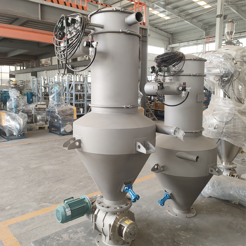 Принцип работы непрерывного вакуумного питающего устройства заключается в использовании вакуумного насоса для создания отрицательного давления в герметизированном сепараторе.таким образом всасывая смесь материала и воздуха и достигая газо-твердого разделения через систему фильтрацииПри выполнении предварительно заданных условий система автоматически отключает вакуум и вводит обратное дуновение сжатого воздуха для разрыва вакуума и очистки фильтрующего элемента.нижний разрядный клапан открывается для того, чтобы материал был выпущен под действием силы тяжести..